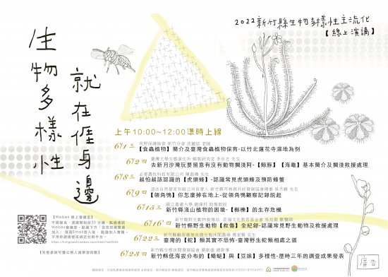 函轉新竹縣政府「2022新竹縣生物多樣性主流化」系列線上演講資訊,請鼓勵所屬人員踴躍參加,請查照。