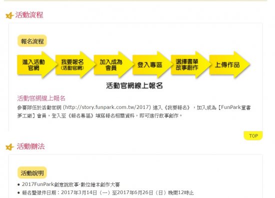 衛生福利部食品藥物管理署與法務部、教育部及智趣王數位科技股份有限公司,為增進學童藥物濫用防制認知,共同辦理2017『FunPark創意說故事-數位繪本創作大賽』活動,請各校踴躍報名參加。