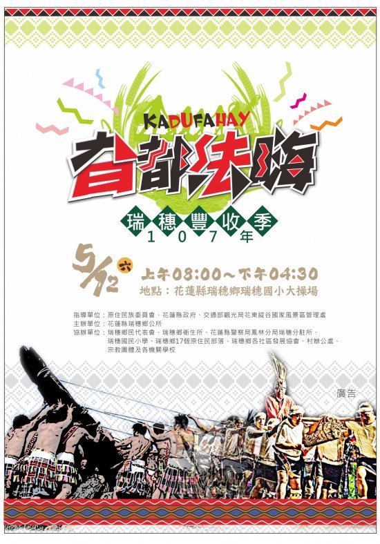 花蓮縣瑞穗鄉公所「107年度瑞穗豐收季-旮都法嗨暨傳統技藝競賽活動」活動。